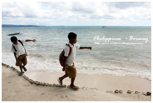 早晨的沙灘還可以見到當小朋友地經過沙灘準備上學去